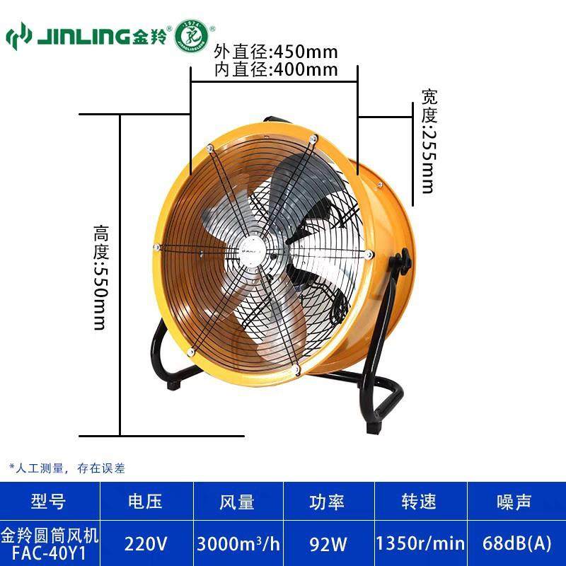 金羚电风扇16/20寸趴地扇手提式轴流圆筒风机大风量工业爬地扇