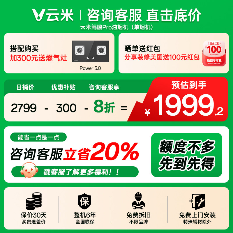 云米鲲鹏Pro油烟机家用厨房大吸力小噪音净烟机自清洁烟灶套装