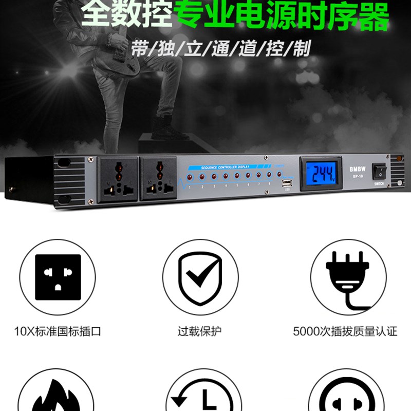 专业电源时序器智能一健开关保护插座顺序控制器带电压显示工作屏