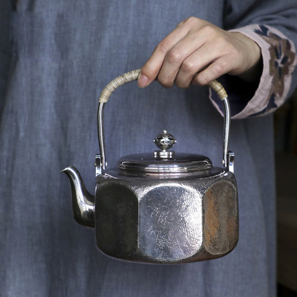 纯银时代八边形纯银壶 纯银999烧水壶手工家用银茶壶大容量1200ml