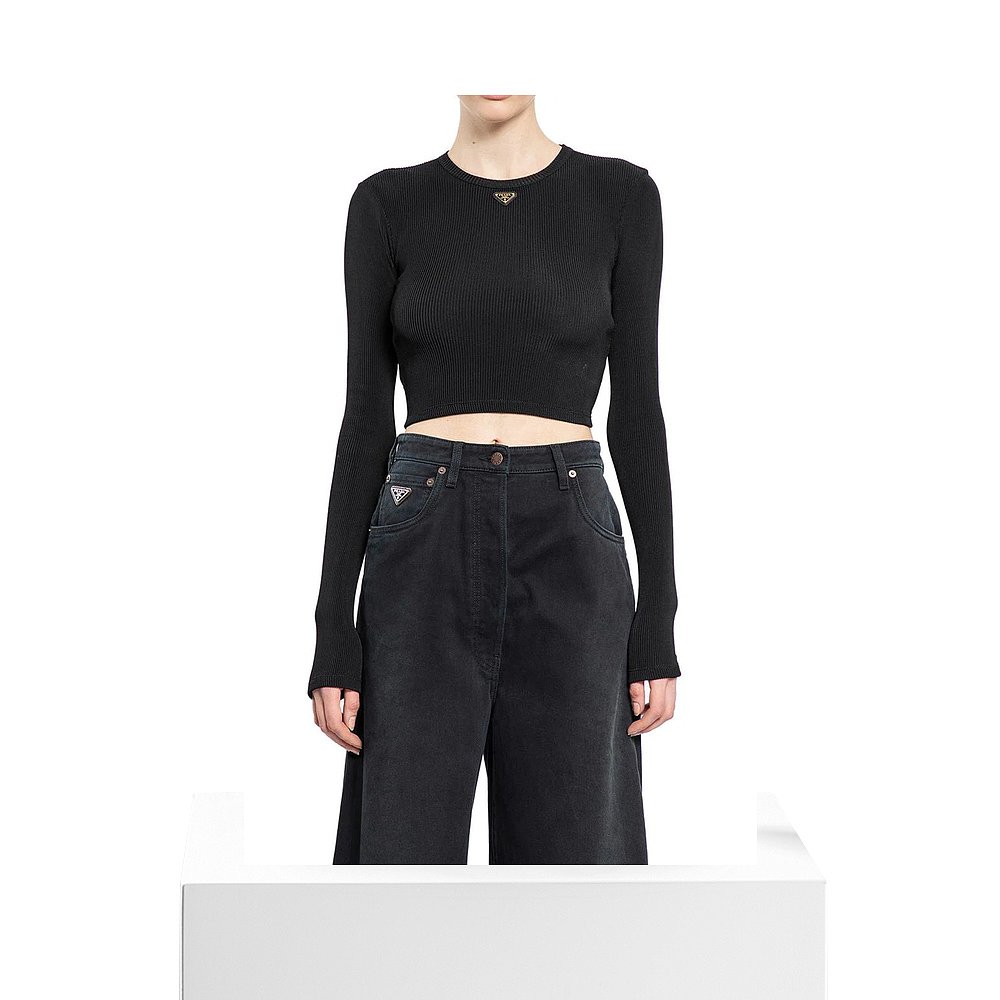 1h可退 PRADA 女士T恤 3959316S9F0002 SS2025 黑色 Prada Tops