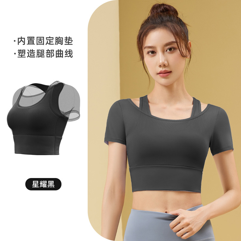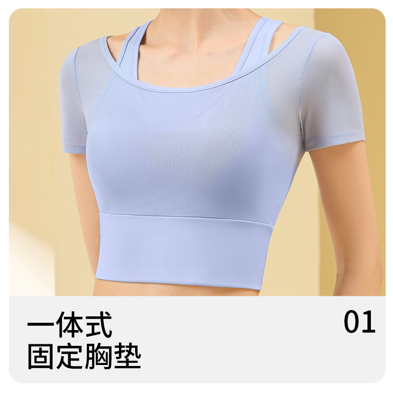 网纱挂脖运动套装裸感显瘦免穿文胸跑步健身速干瑜伽服女夏薄
