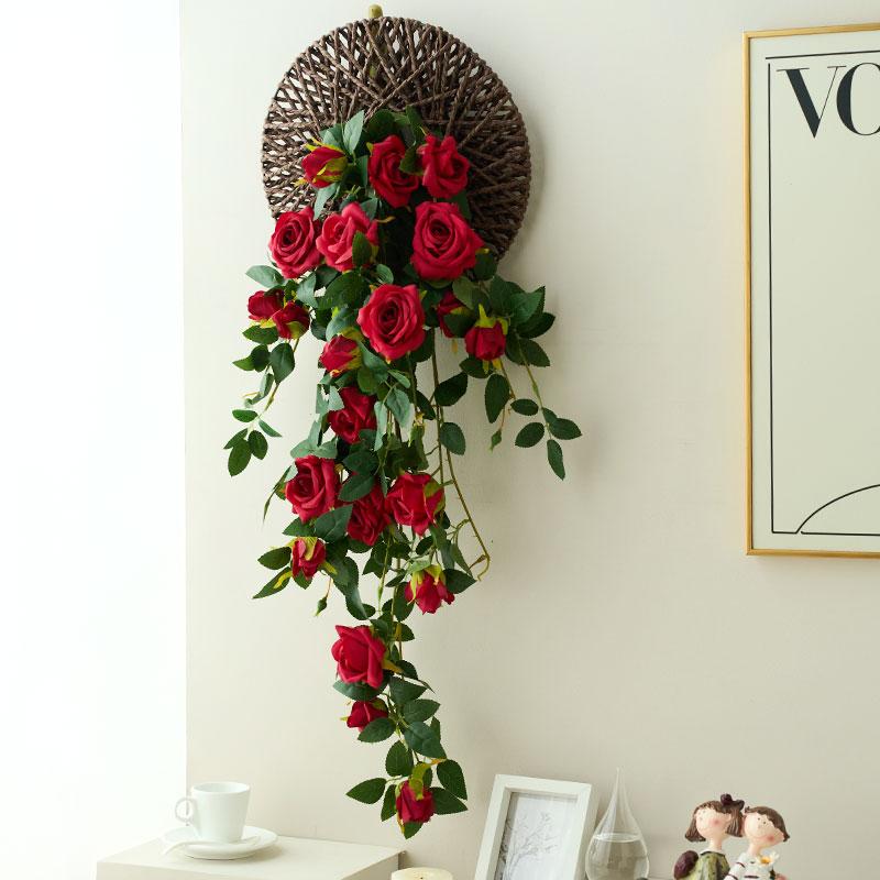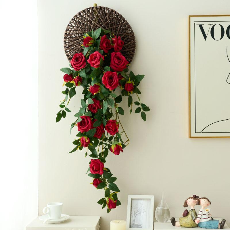 网红款田园风仿真花壁挂墙面装饰玫瑰花藤蔓客厅阳台改造装饰挂件