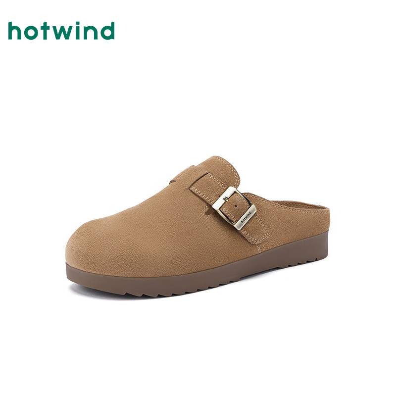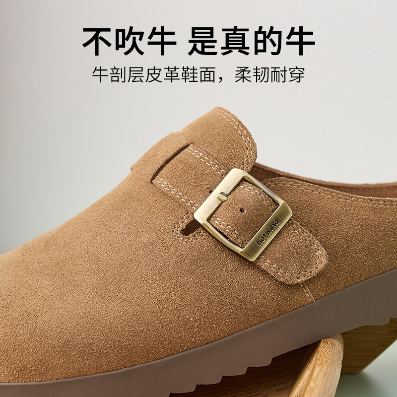 热风男鞋2026年春季新款男士时尚复古勃肯拖杏色百搭厚底休闲鞋