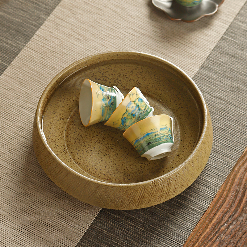 粗陶茶洗建水水盂茶钵茶渣缸洗茶杯盖碗茶盂家用笔洗功夫茶具配件
