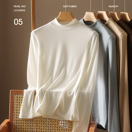 咆哮推荐~含珍珠山羊绒打底衫女内搭发热半高领套头长袖T恤针织衫