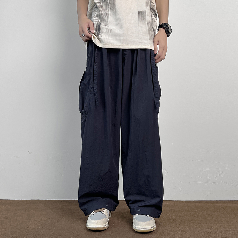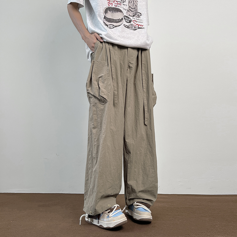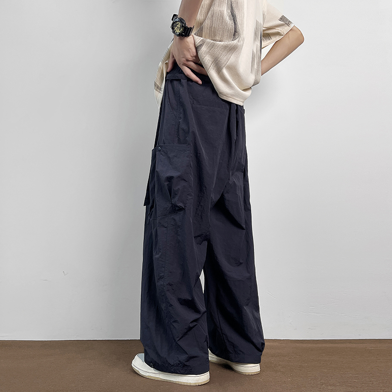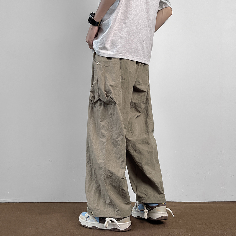重磅山系冰丝褶皱工装冲锋裤男女薄款速干运动宽松阔腿休闲裤直筒