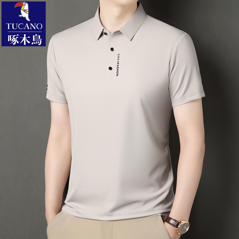 啄木鸟男士短袖t恤桑蚕丝polo衫夏季翻领半袖冰丝纯色休闲体恤衫
