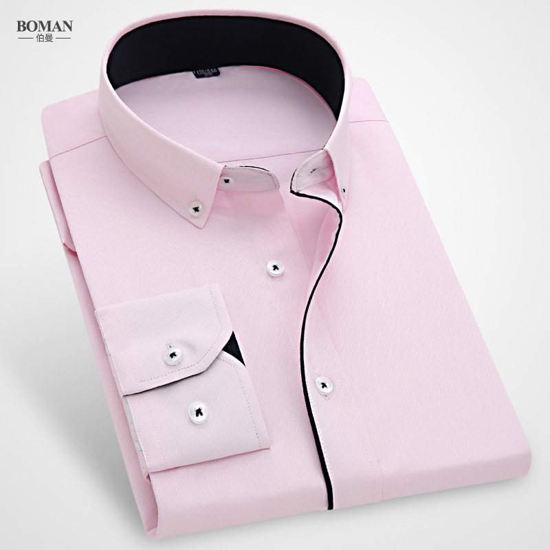 长袖衬衫男青年商务休闲职业工装粉色白衬衣新郎结婚伴郎兄弟团潮
