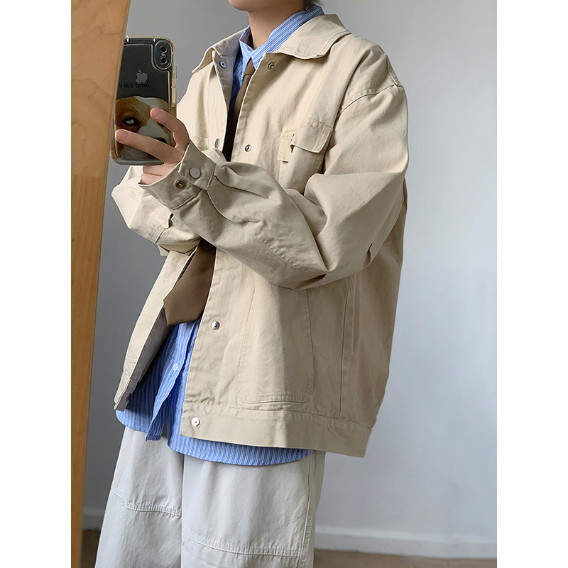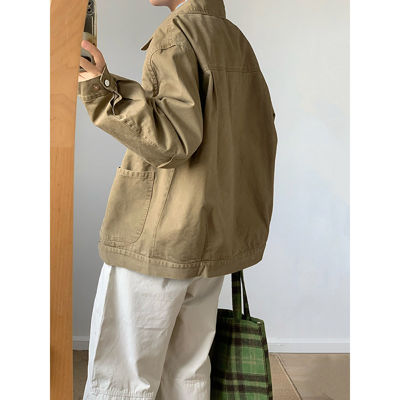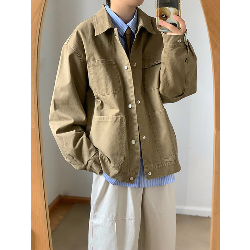翻领春秋宽松多口袋重磅水洗夹克
