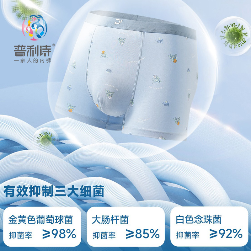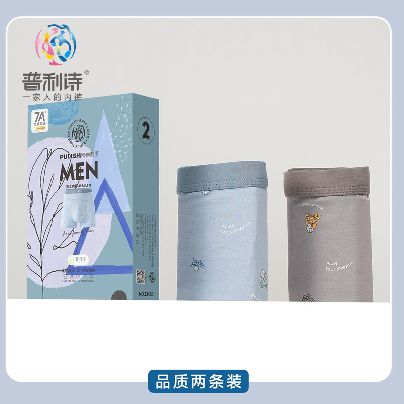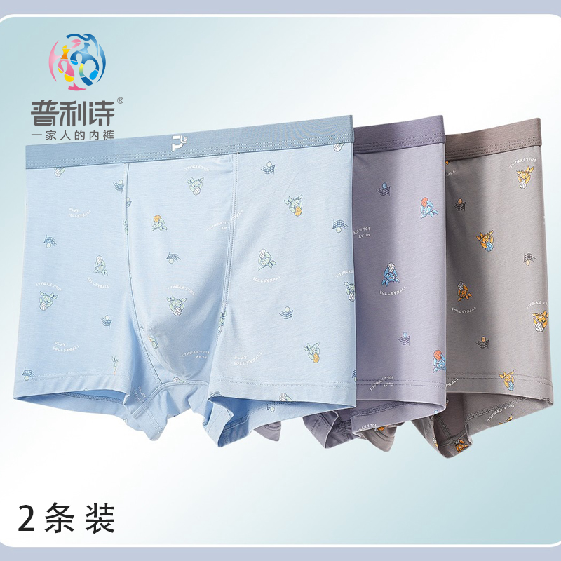 普利诗新款男士内裤男莫代尔7A抑菌无缝中腰平角裤青年透气2条装