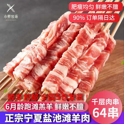 五花羊肉串半成品冷冻3斤宁夏盐池滩羊肉烧烤食材64串