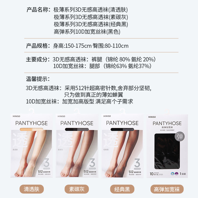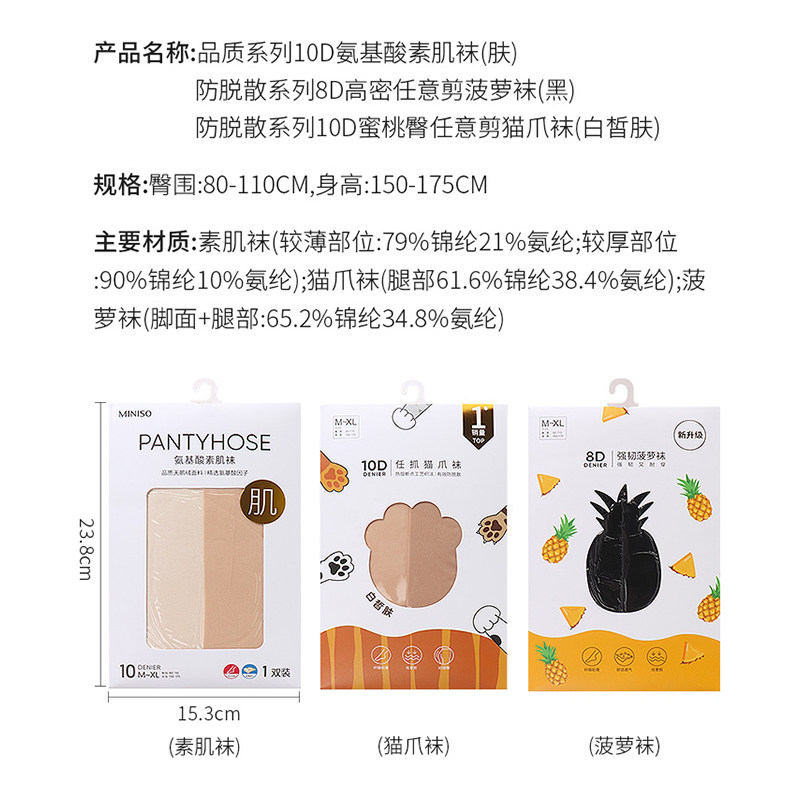 名创优品极薄防脱散系列3D修色粉底袜蜜桃臀高密任意剪猫爪菠萝袜