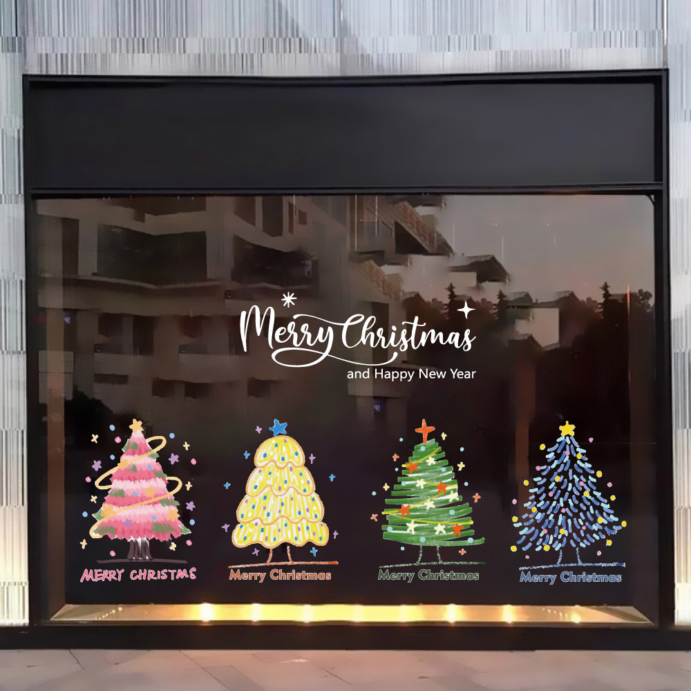 2026圣诞节圣诞树玻璃静电贴纸