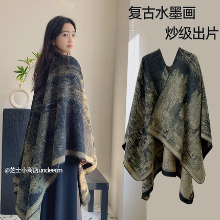 大西北新疆春夏季外搭披肩川西旅游斗篷西藏旅行穿搭厚围巾披风女