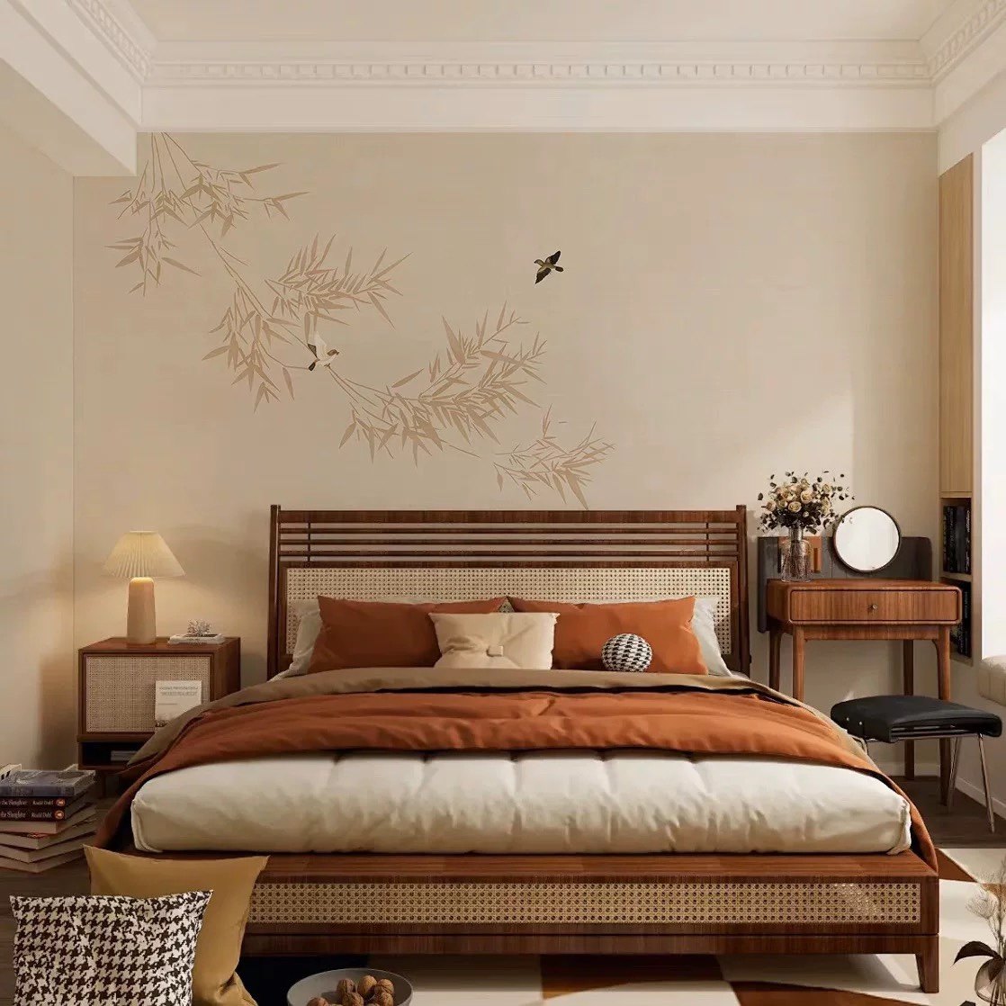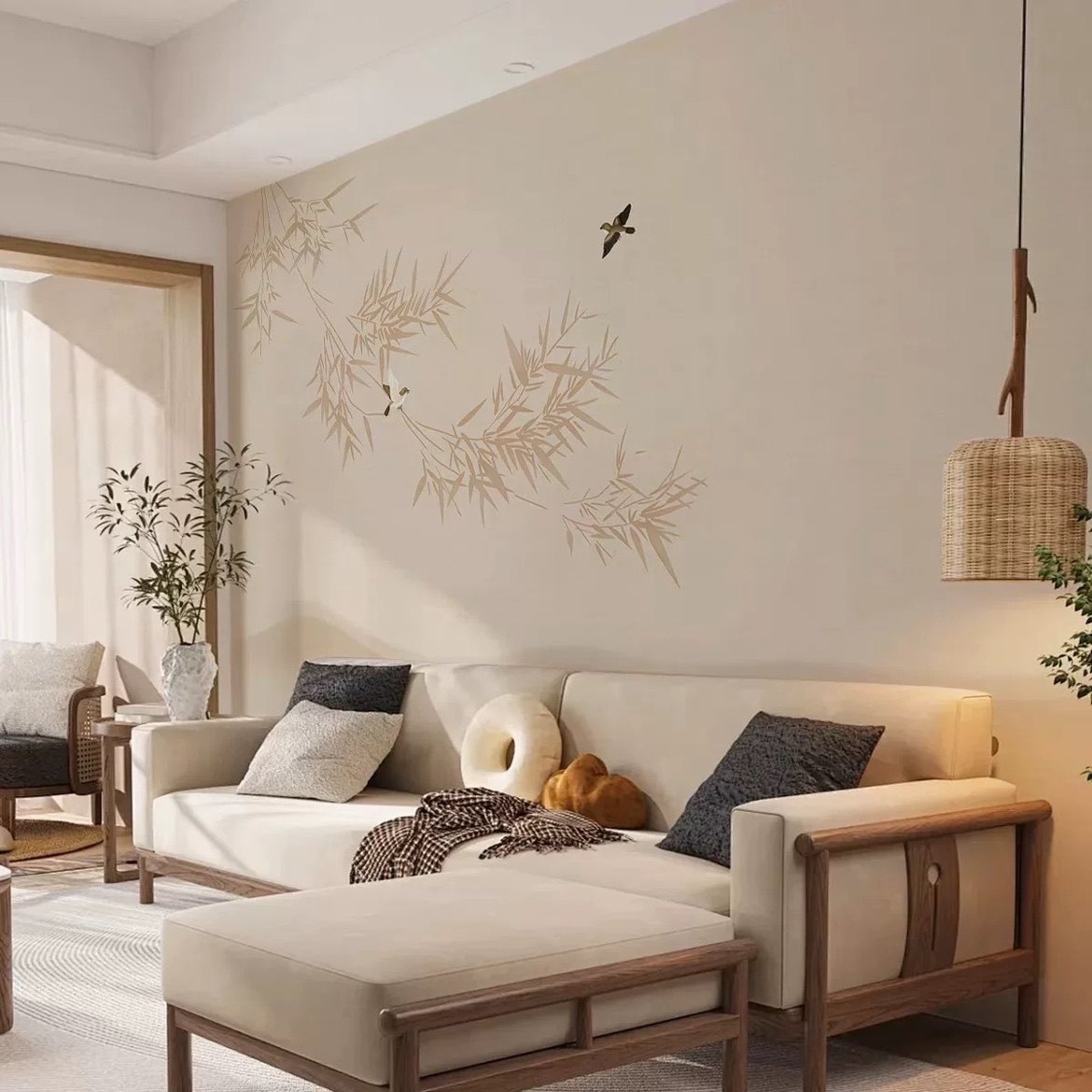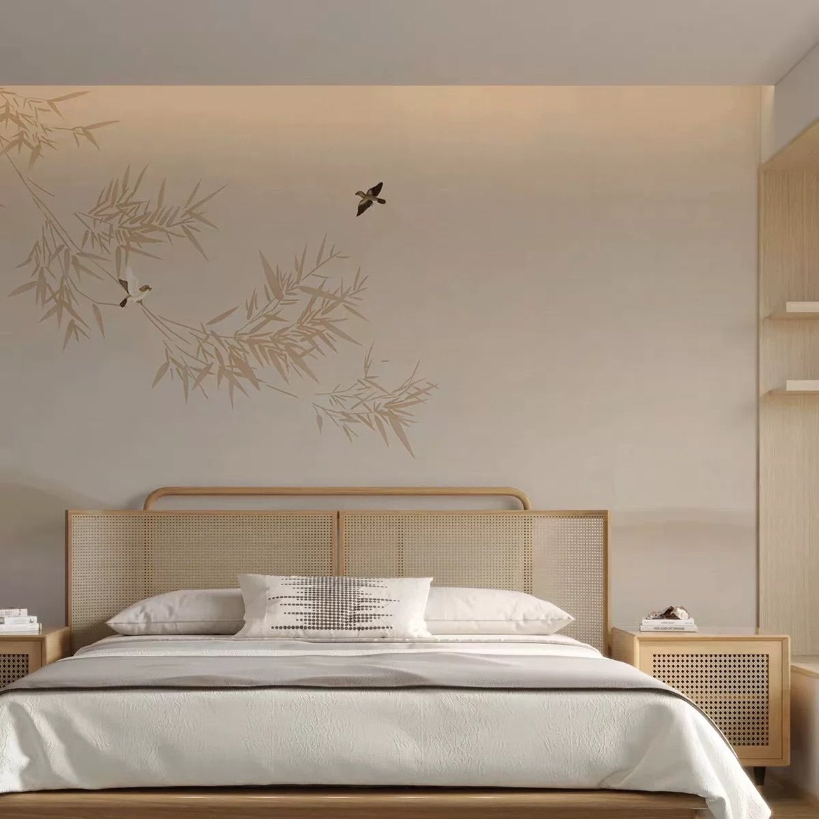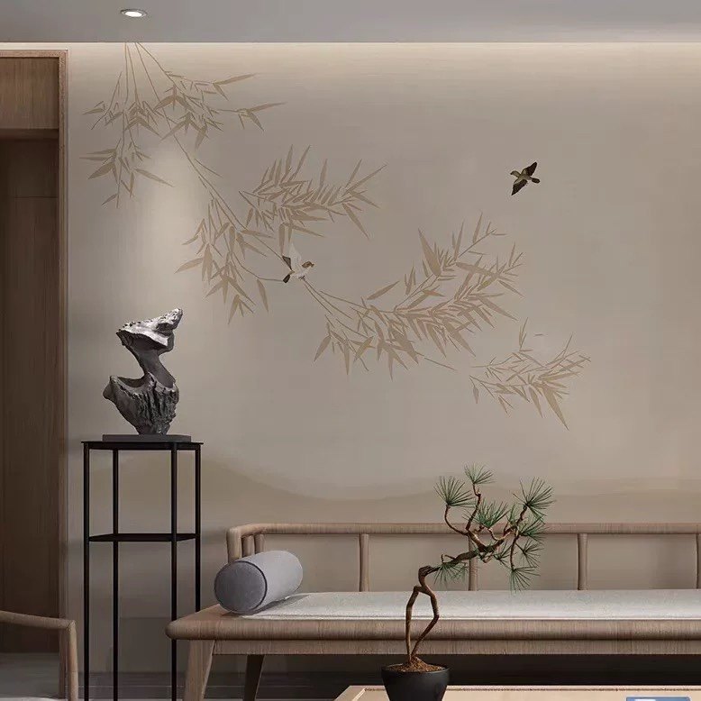 中式古典竹林壁纸淡雅花鸟茶室壁布温馨酒店床头客厅背景定制墙布