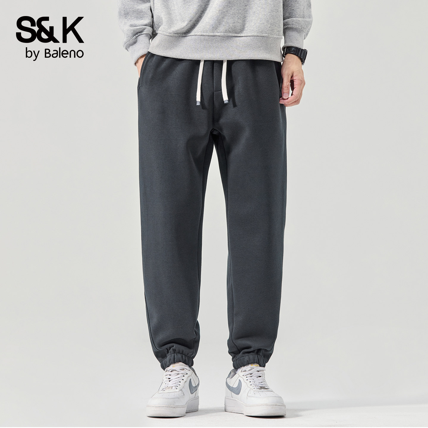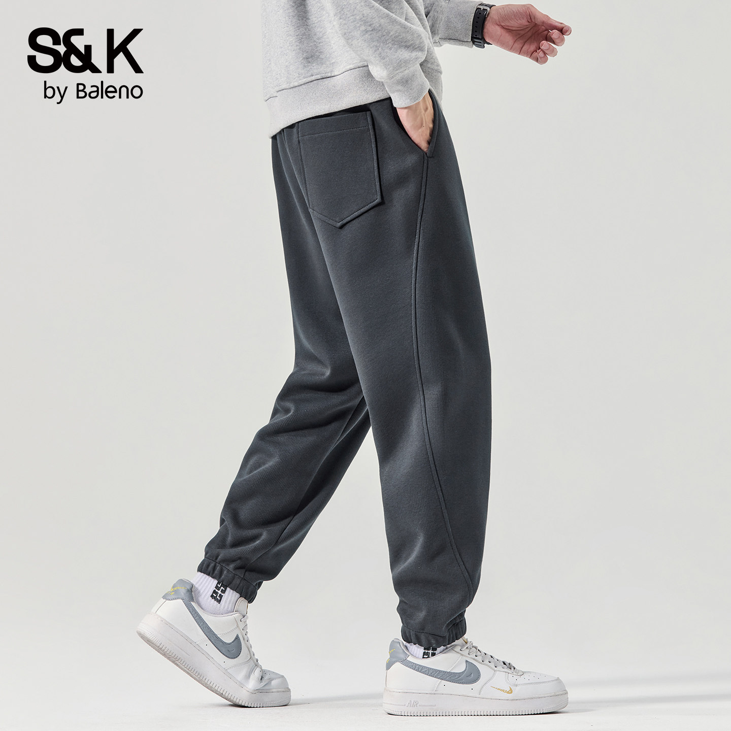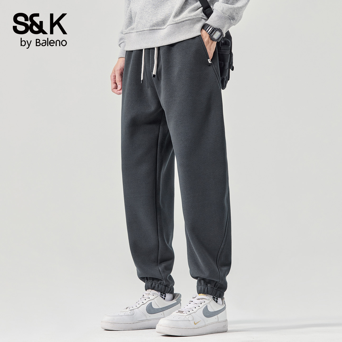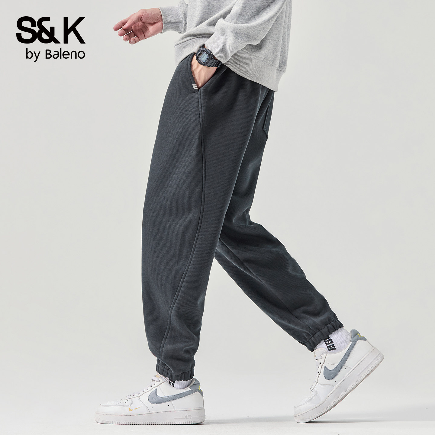 班尼路SK休闲裤男士秋冬季加绒加厚潮牌运动百搭宽松束脚九分裤YS