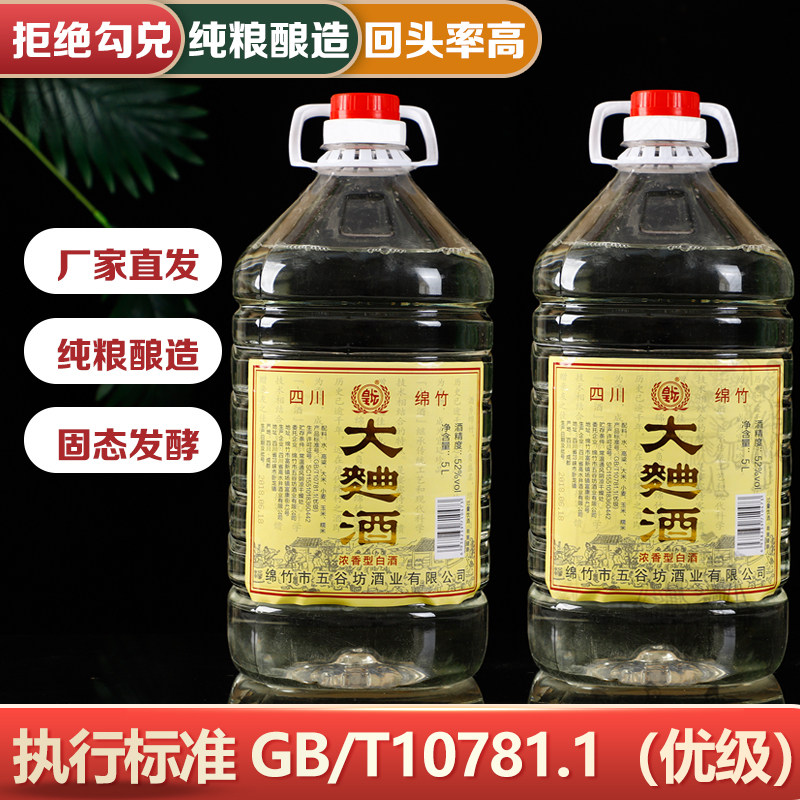2018年四川绵竹大曲酒5升桶装高度白酒纯粮散装52度散酒泡酒高粱