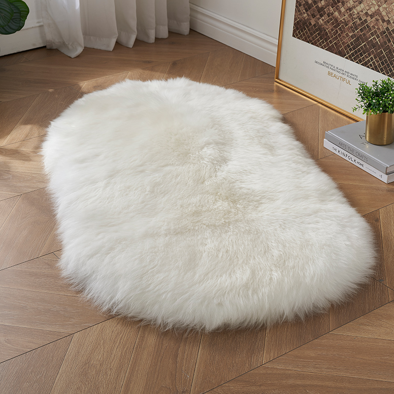 澳尊澳洲羊毛床边毯毛毛卧室椭圆形白色长毛床边地毯卧室厚羊皮毯