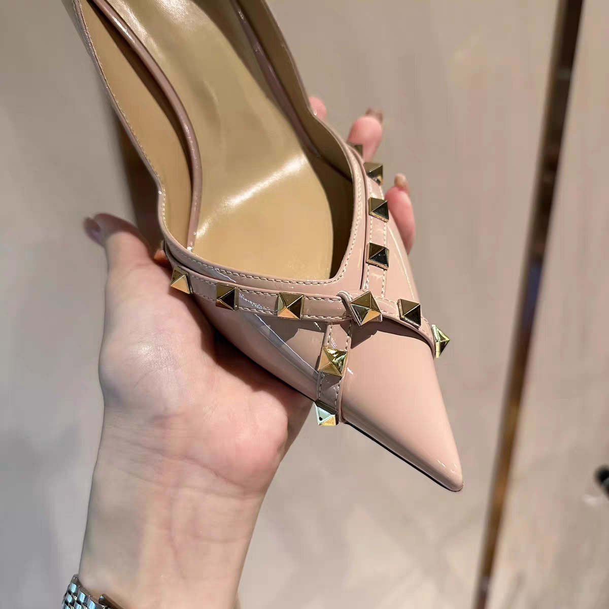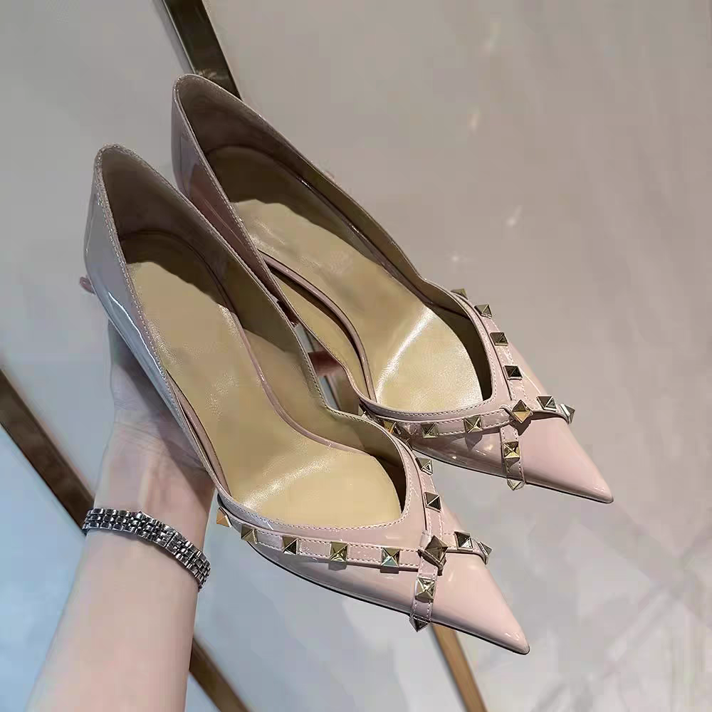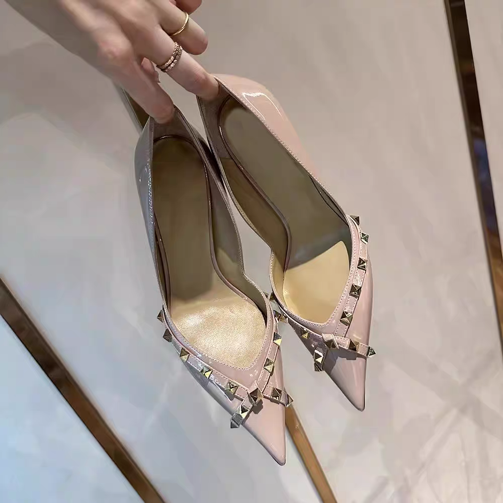 羊皮版尖头高跟鞋女2025秋冬新款性感裸色配裙子细跟铆钉绝美单鞋