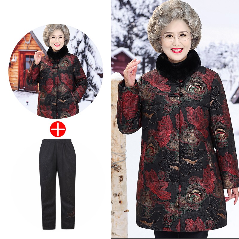 妈妈冬装羽绒服中长款加厚保暖老太太衣服老年人女装奶奶新款外套