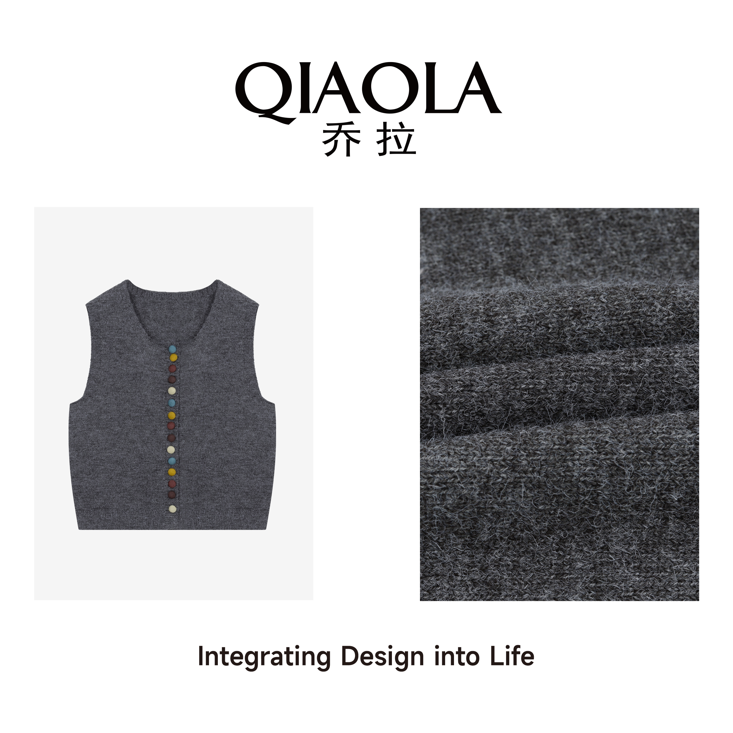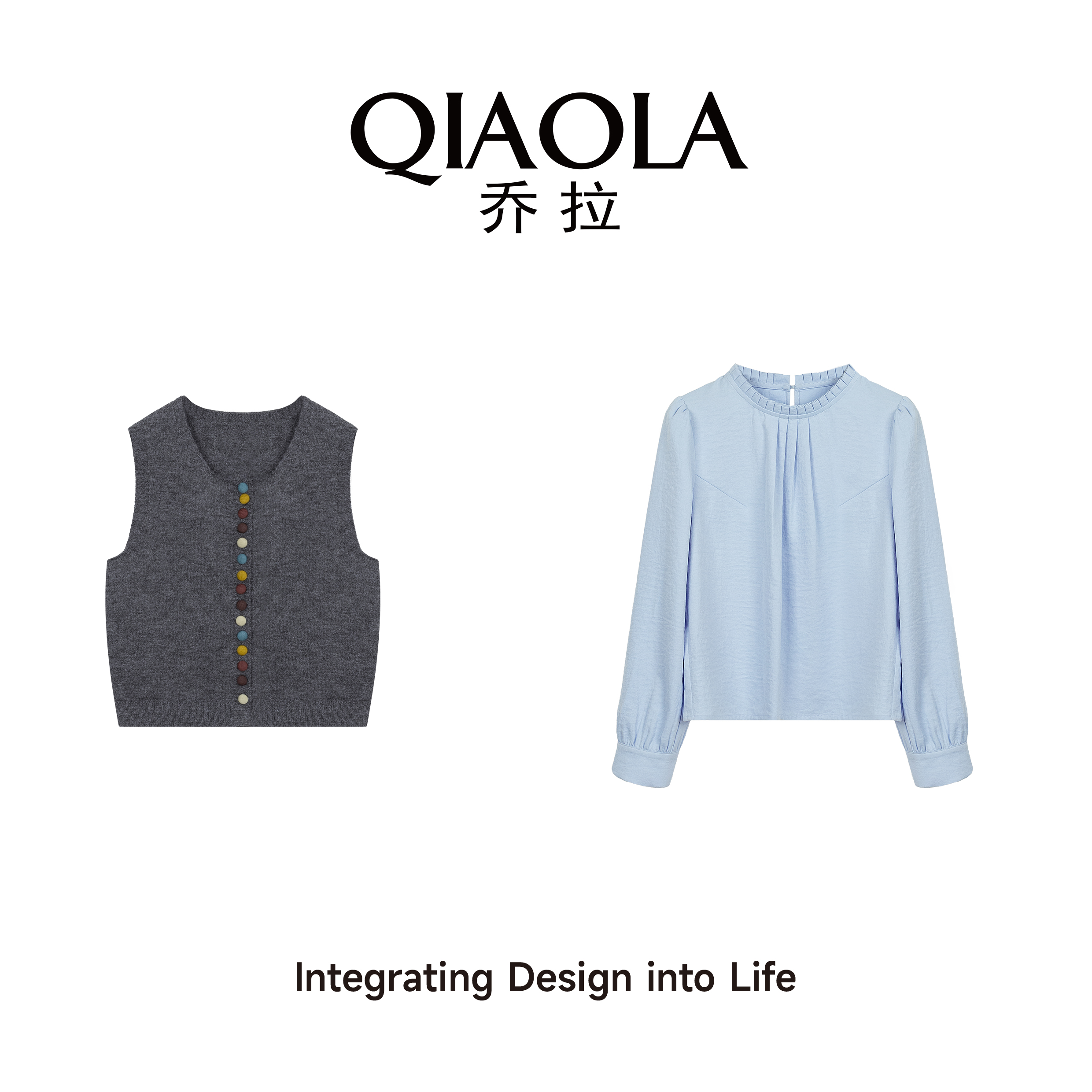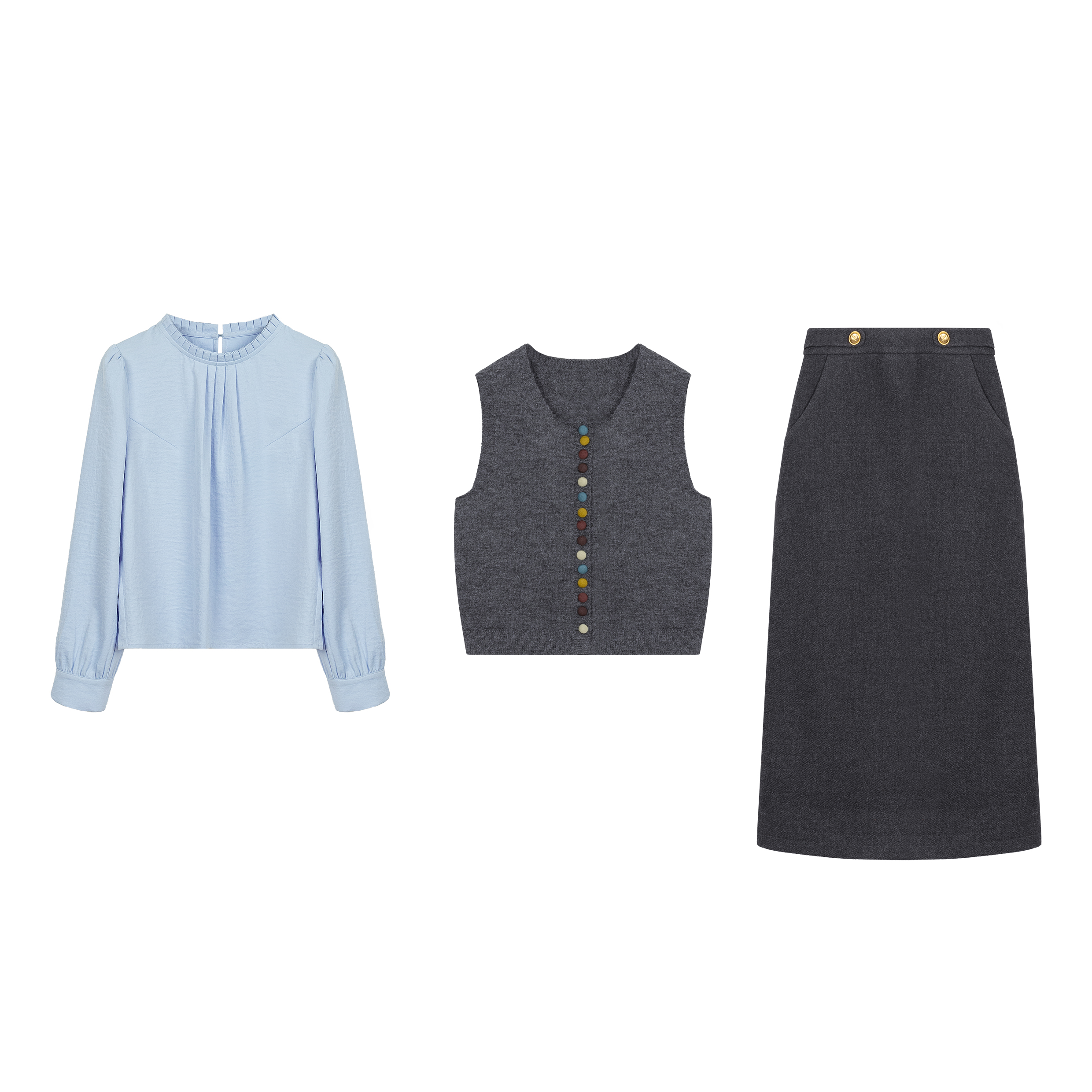 乔拉【青春糖豆】秋冬季学院风时尚套装女针织马甲背心衬衫半身裙