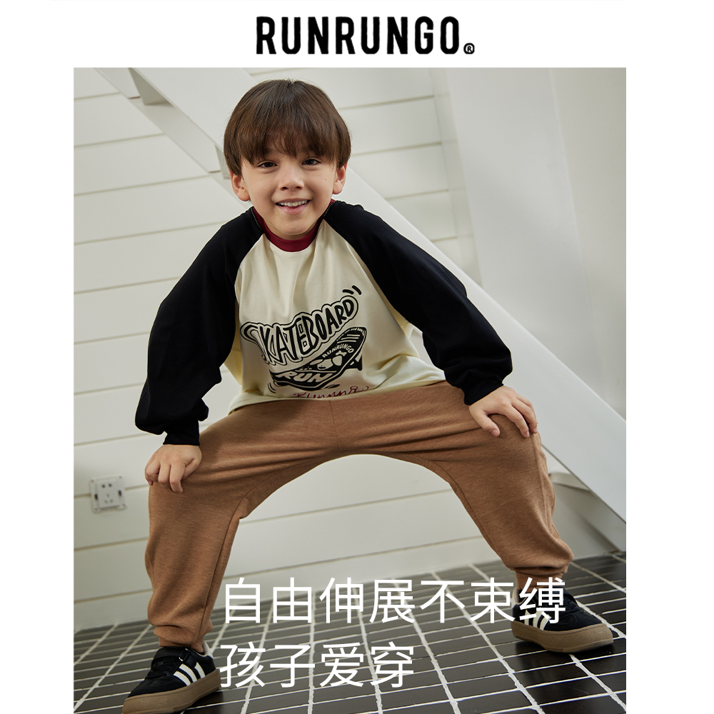 RUNRUNGO可爽绒 儿童卫裤男女童春秋季宽松长裤简约运动休闲裤子