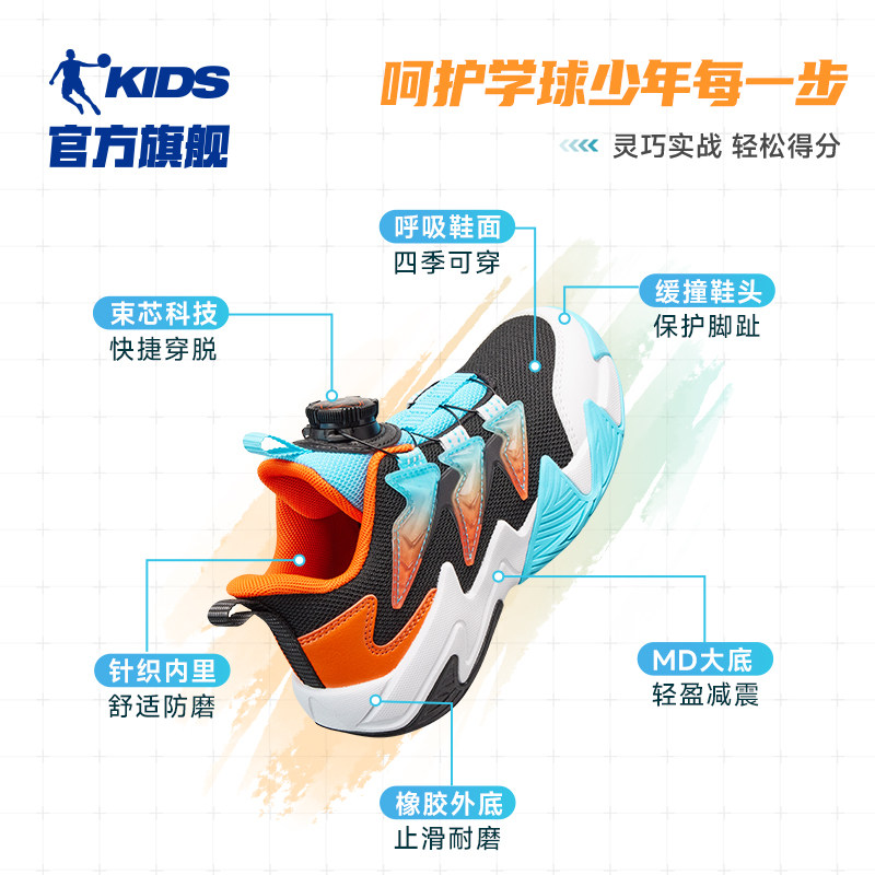 乔丹童鞋儿童专业训练篮球鞋男小童运动鞋2025春季新款旋钮扣鞋子