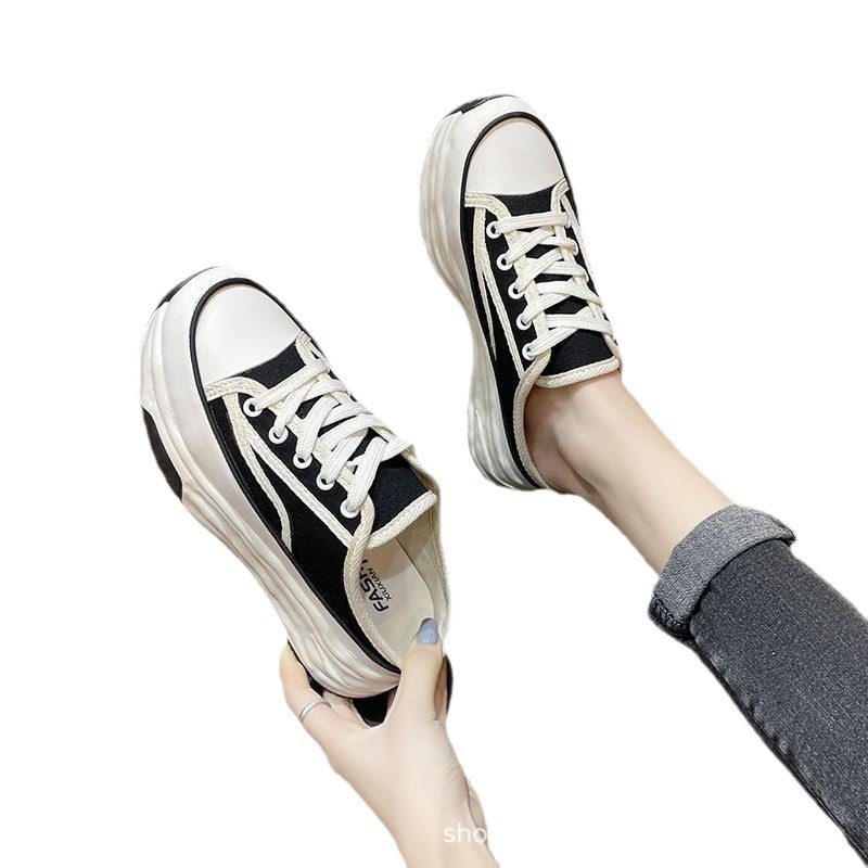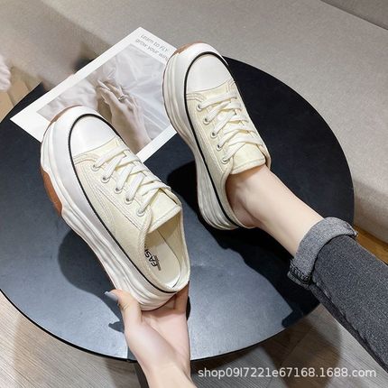 25新款厚底包头半拖鞋女士夏外穿松糕底休闲懒人透气半托帆布拖鞋