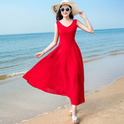雪纺连衣裙2025夏季无袖波西米亚长裙优雅时尚海边度假沙滩裙气质