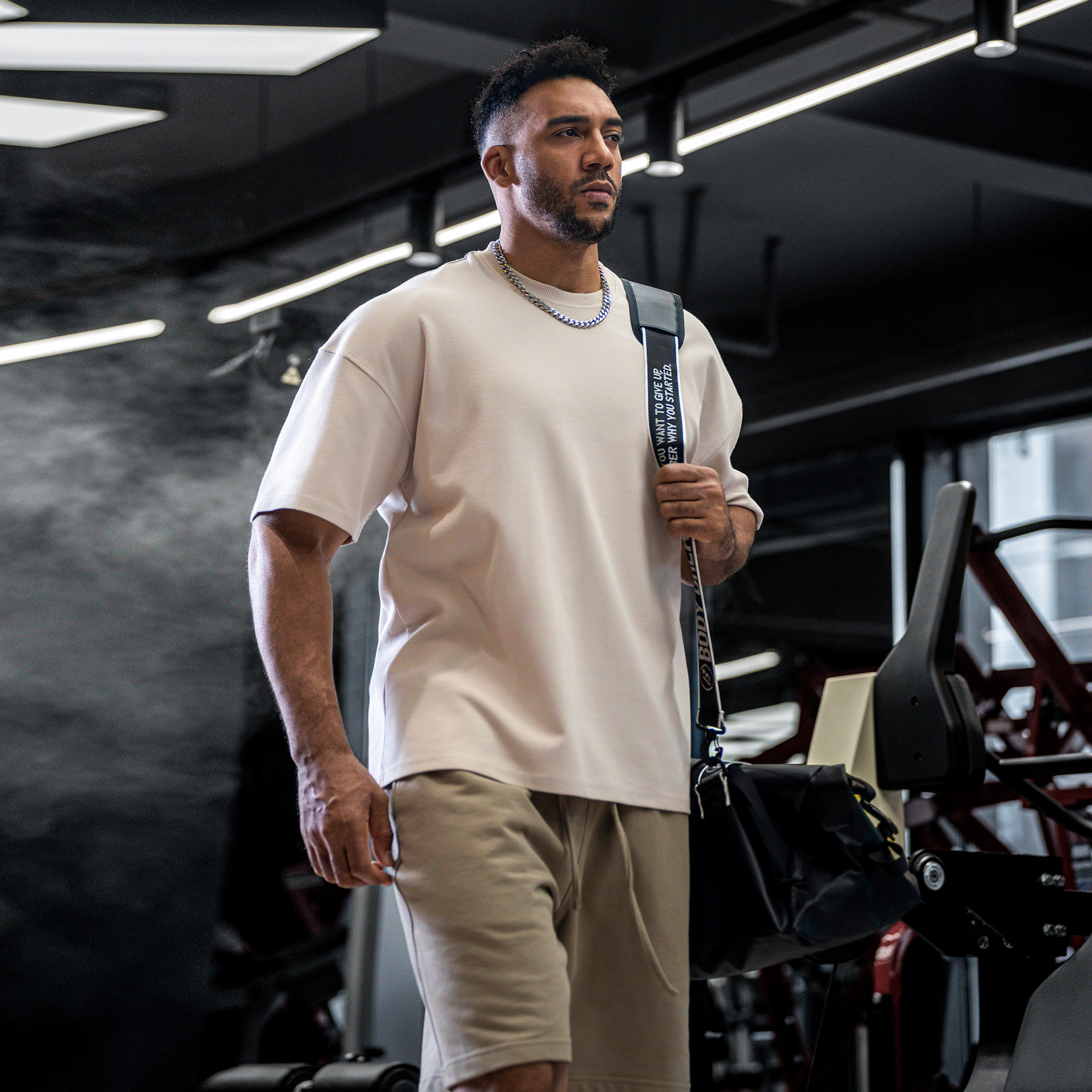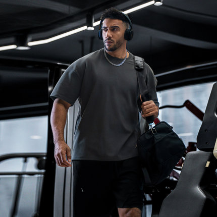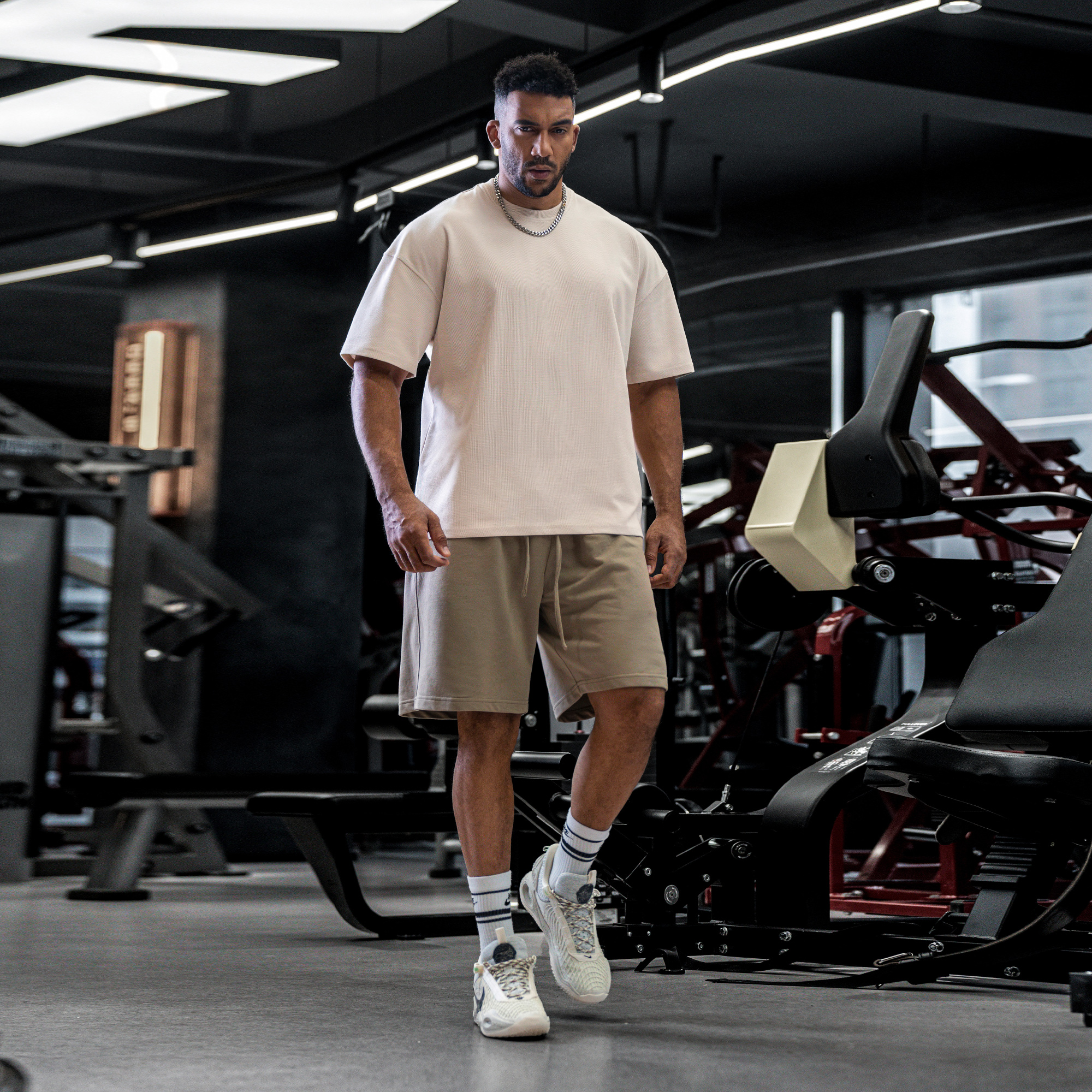 bdpowerup夏季新款重磅华夫格针织短袖简约跑步圆领宽松运动T恤男