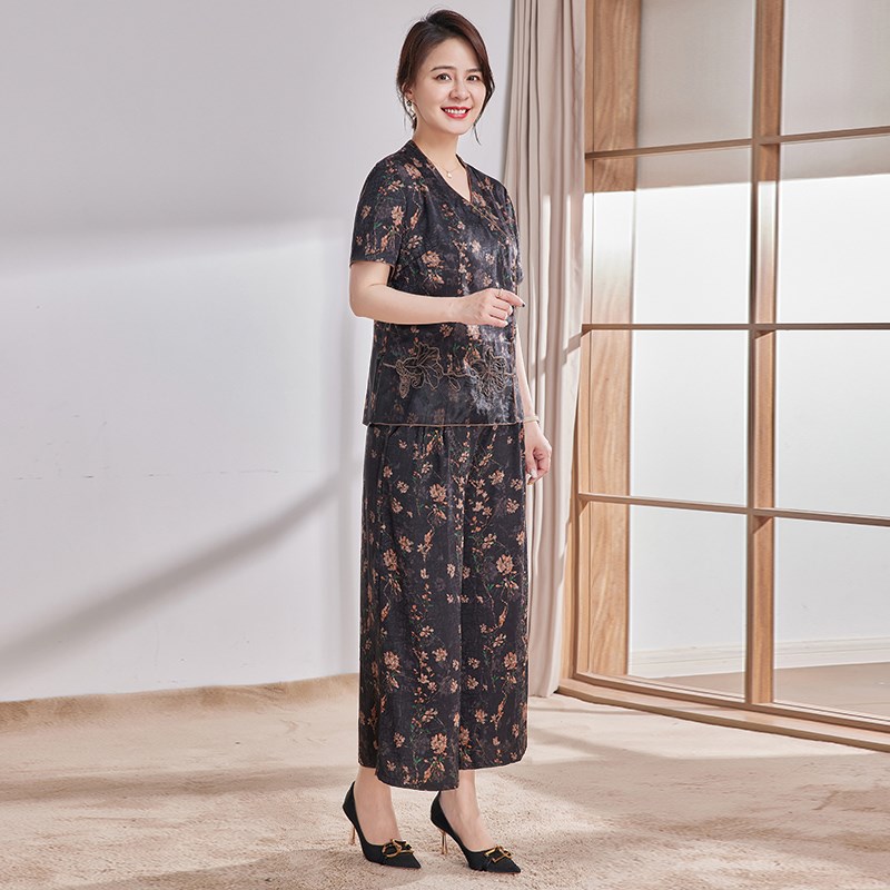 妈妈夏装休闲套装50岁60中老年人女夏季洋气奶奶短袖阔腿裤两件套