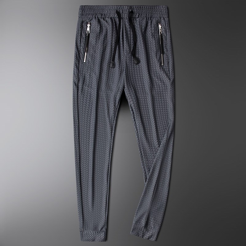 轻奢千鸟格提花冰丝休闲裤男通勤商务夏季薄款修身小脚速干运动裤