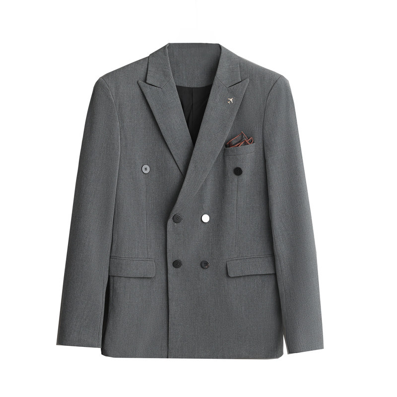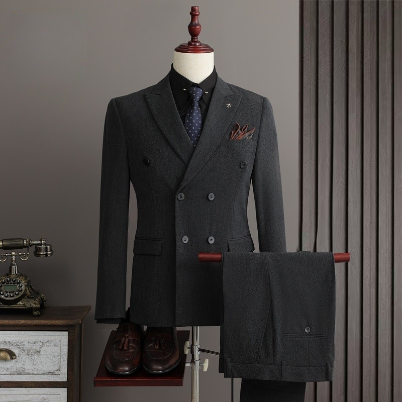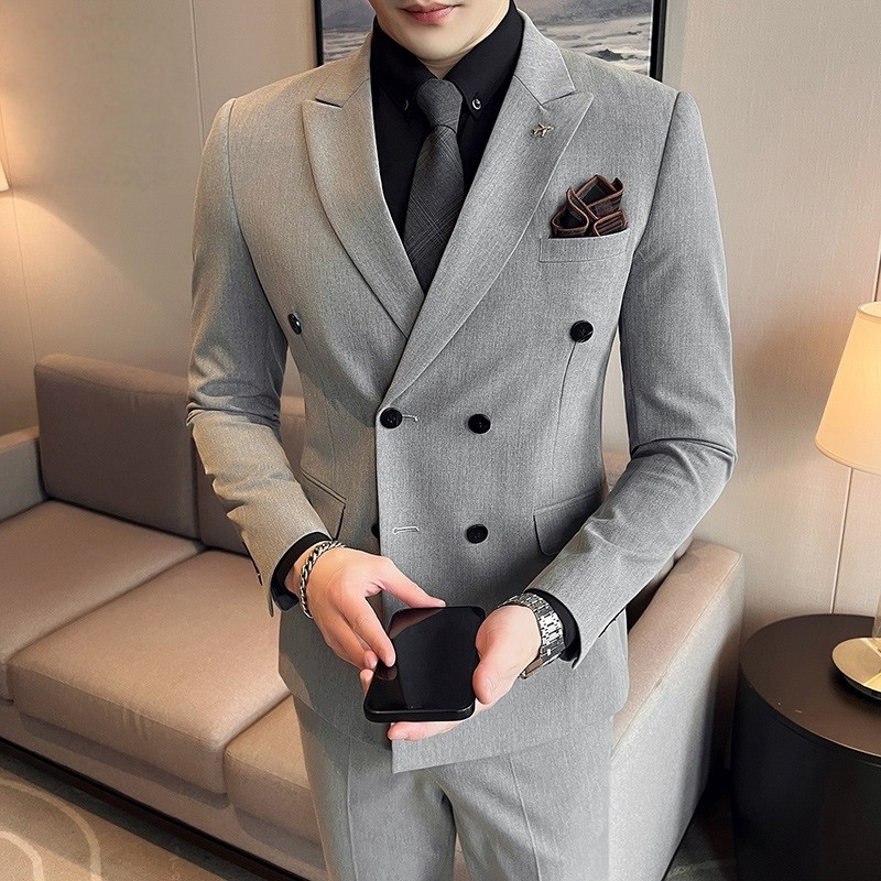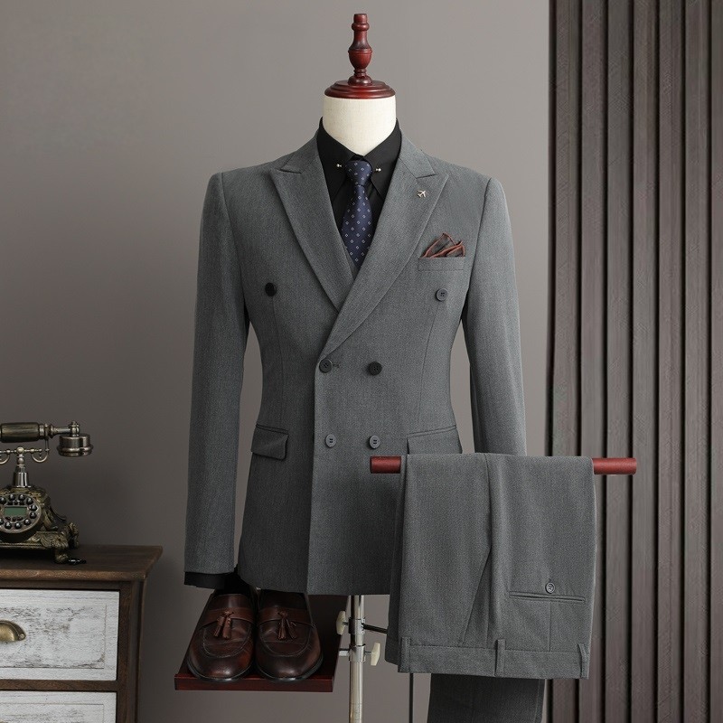 皮尔卡丹双排扣西服套装男士商务正装高级感西装新郎结婚修身外套