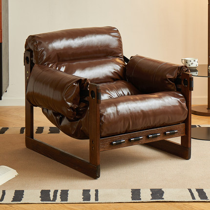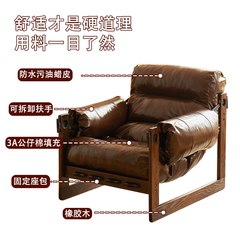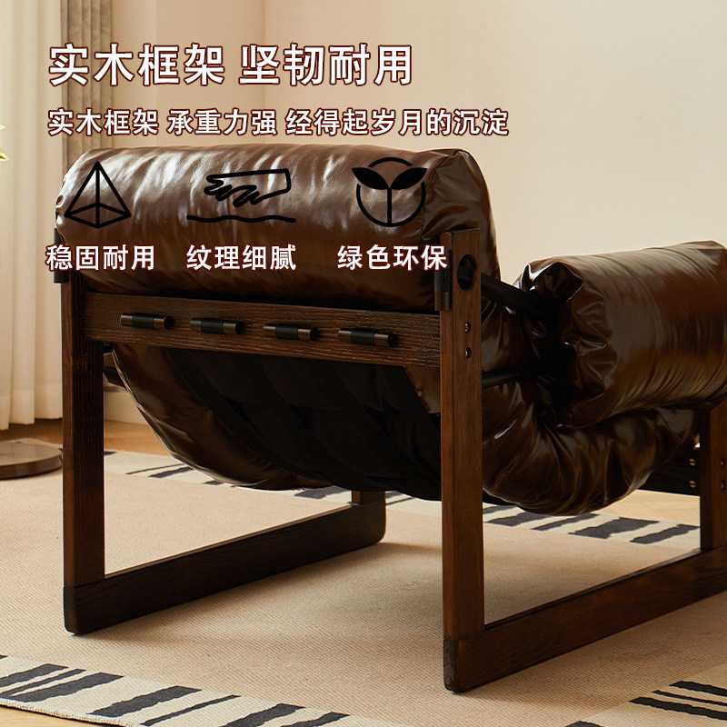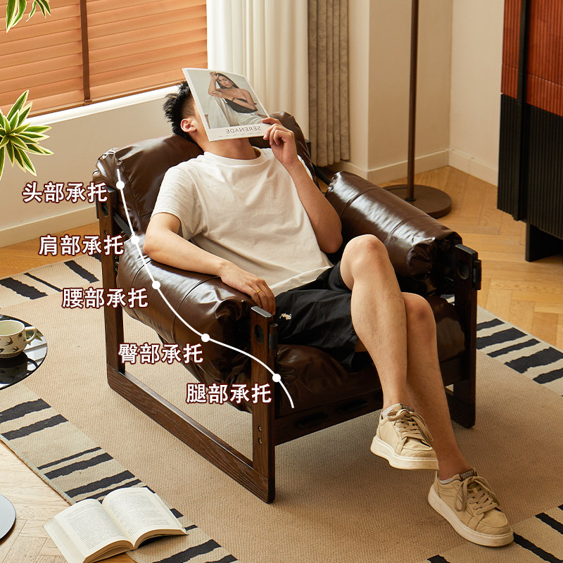 复古单人泽西岛椅单人沙发椅皮质客厅休闲椅躺椅实木框架懒人沙发