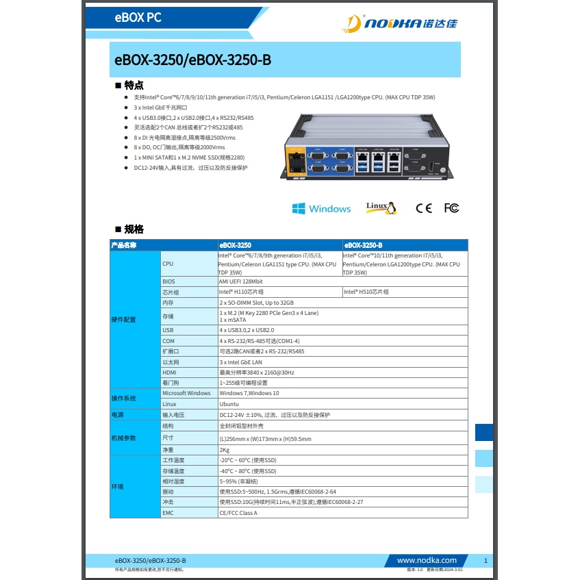 诺达佳eBOX-3250嵌入式工业电脑工控机原装无风扇USB智能主机平台