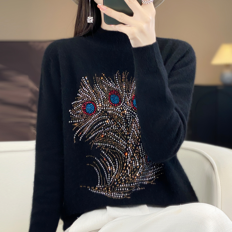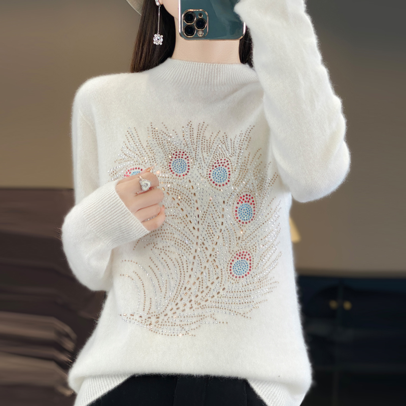 100%纯羊毛衫女一线成衣半高领宽松镶钻洋气年末清针织毛衣打底衫