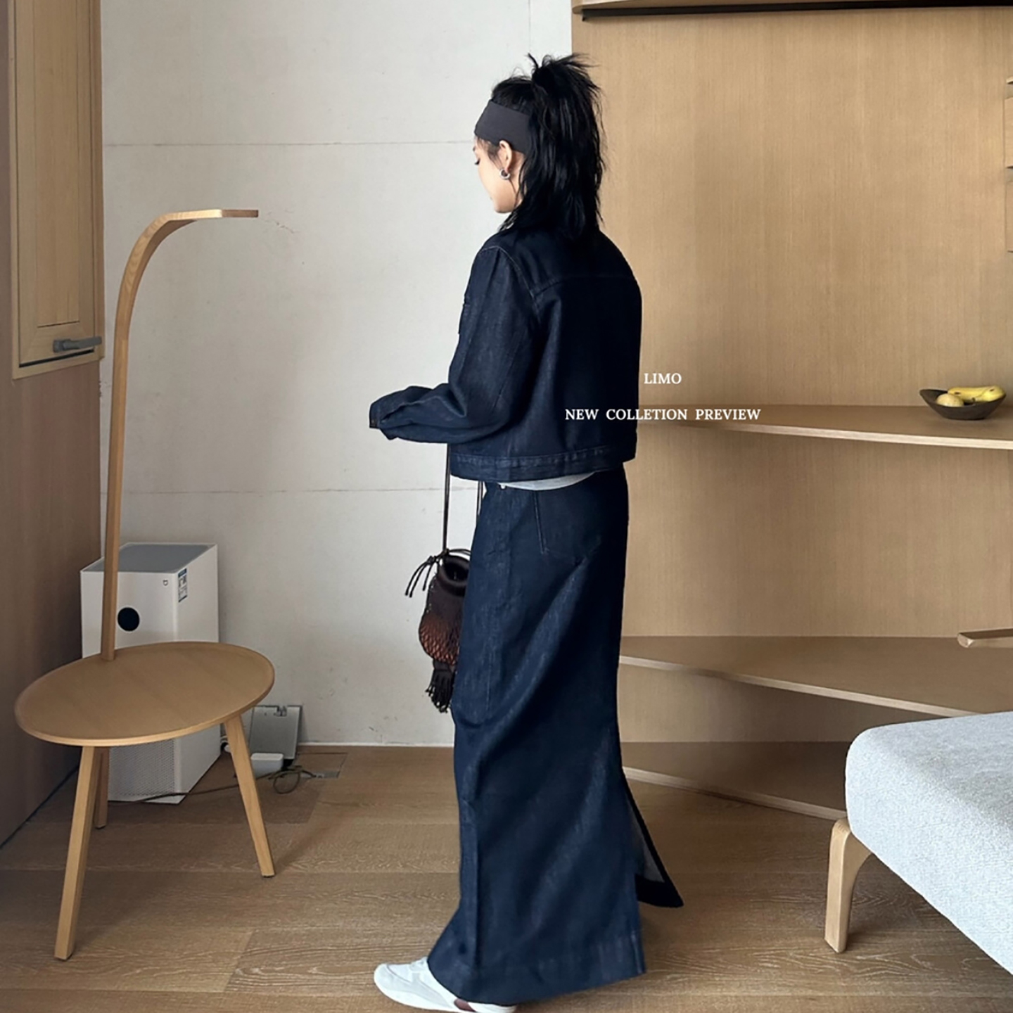 LIMO 2025早秋新款 极简经典百搭通勤简约纯色高腰牛仔长半身裙女