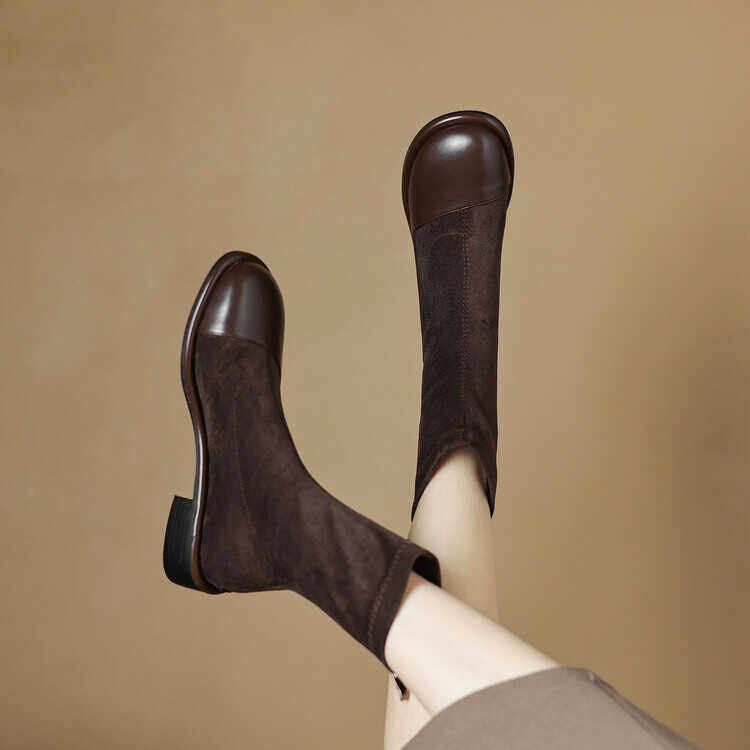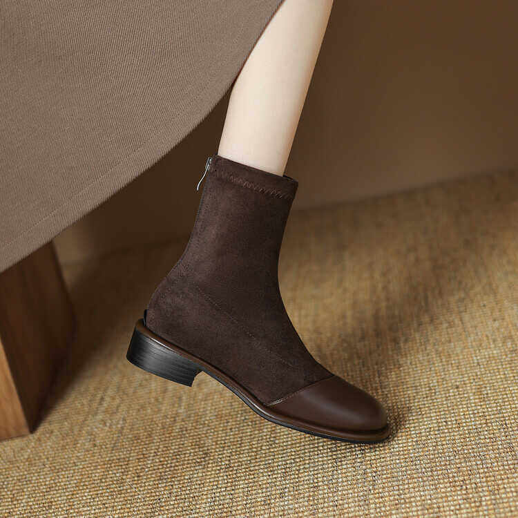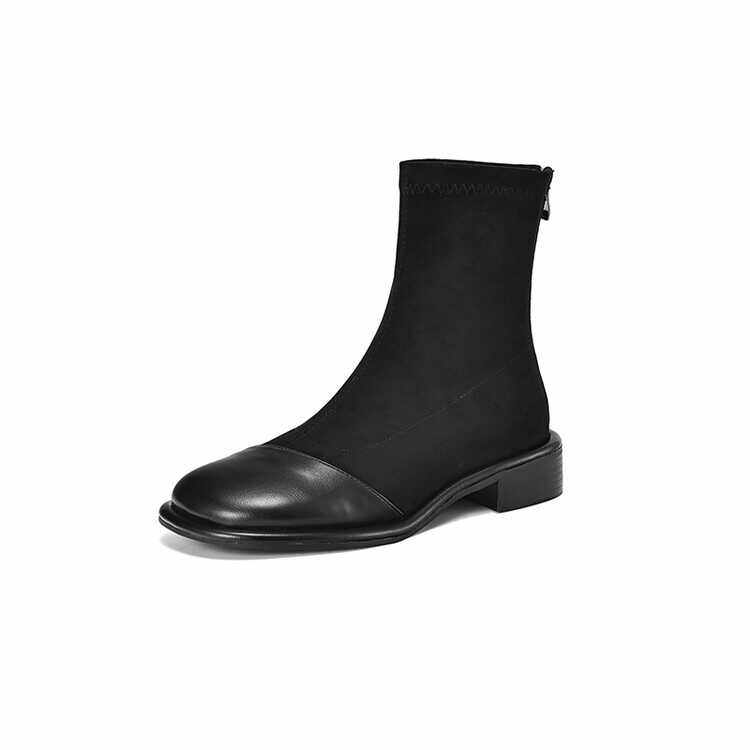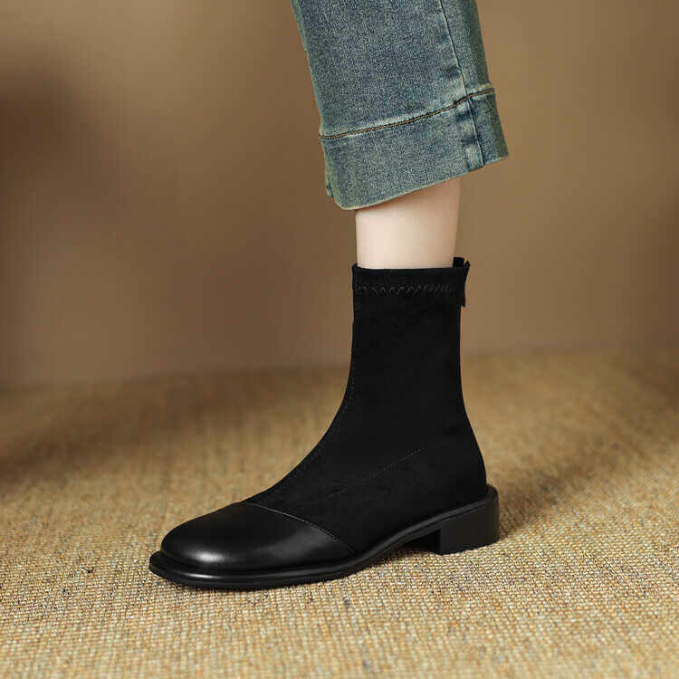 黑色短靴女春秋单靴中跟网红瘦瘦靴中筒靴圆头加绒马丁靴女414243