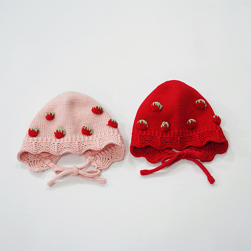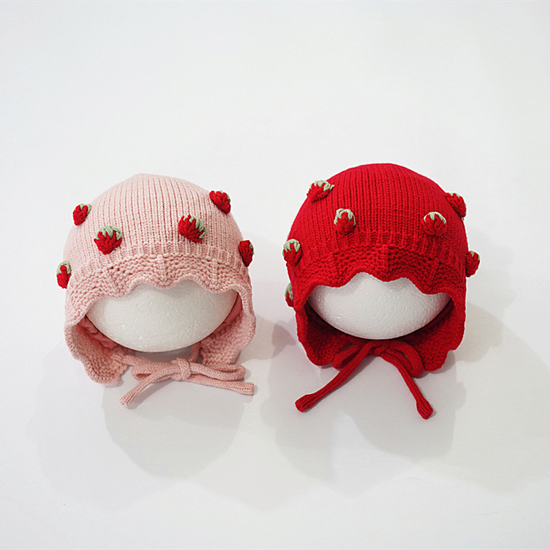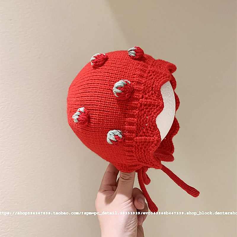 婴儿帽子秋冬款可爱超萌护耳女童新生儿胎帽宝宝针织毛线帽保暖红