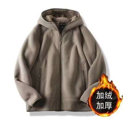 高质量冬季加绒加厚外套男重磅麂皮绒连帽卫衣男连帽宽松保暖外套