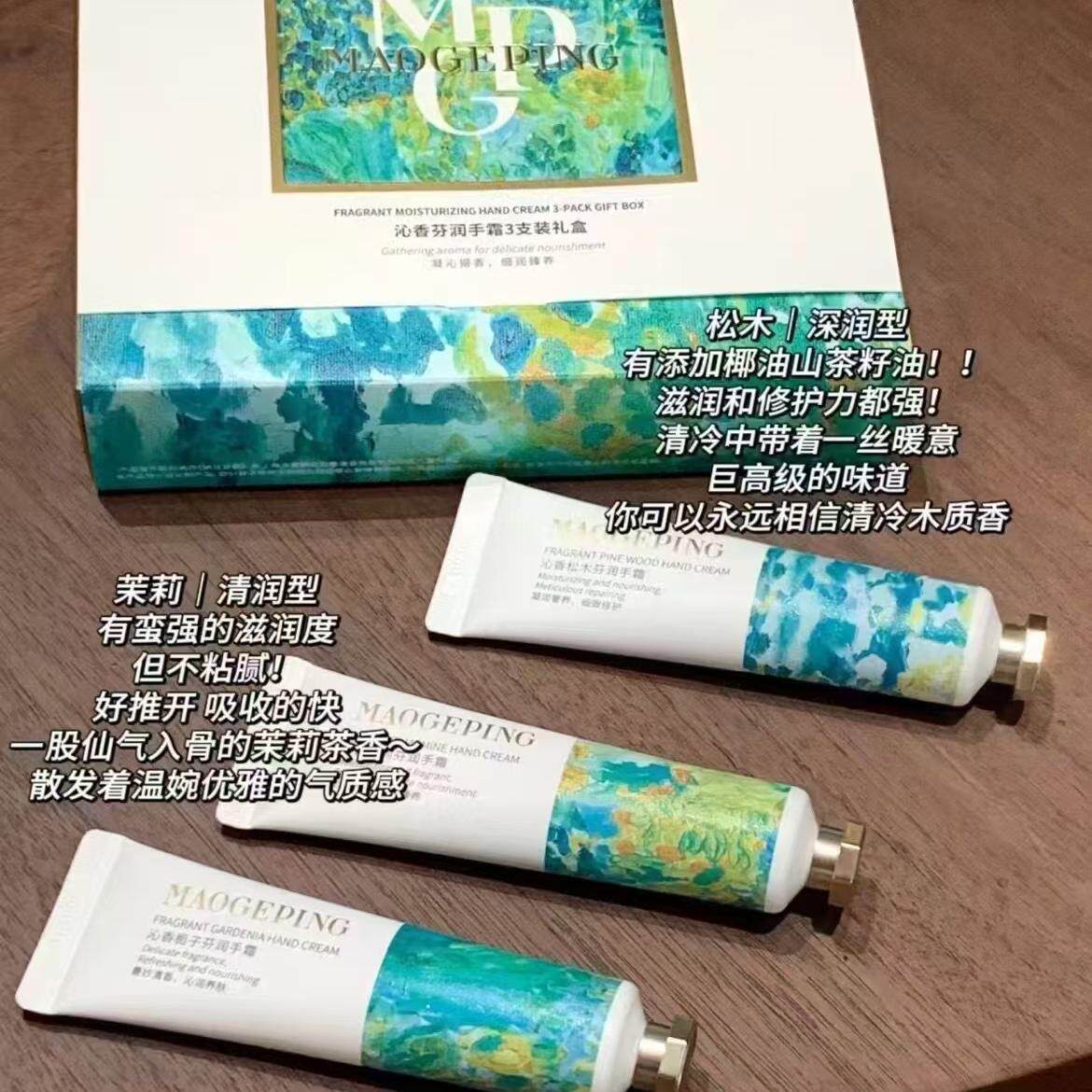 毛戈平护手霜联名款礼盒沁香松木栀子茉莉花三支装润手霜25g*3