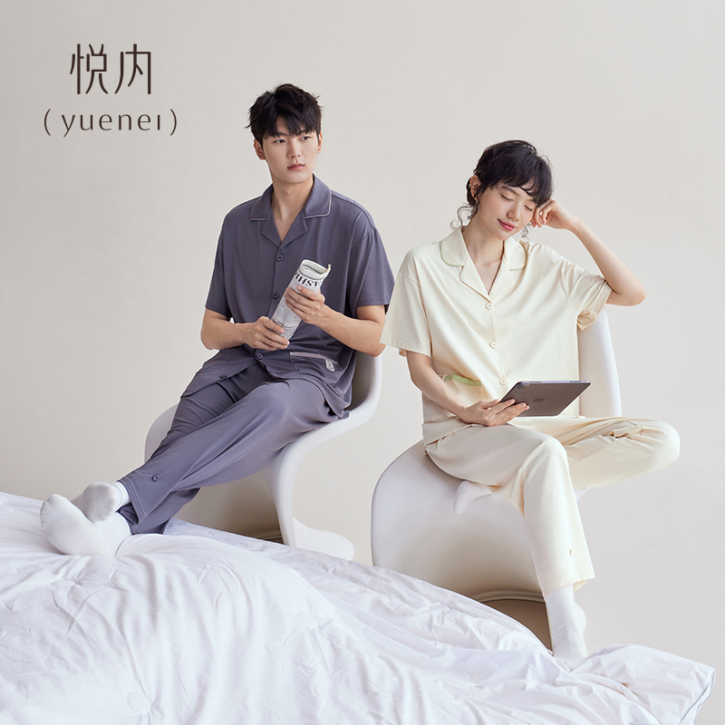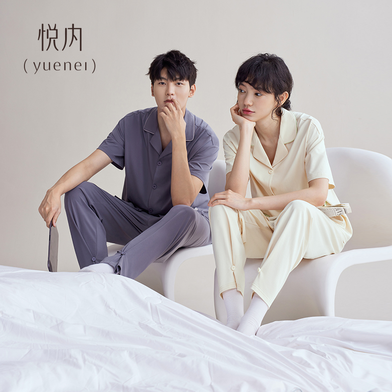 【5A抑菌】悦内情侣睡衣男士夏季纯棉短袖长裤家居服女款夏天夏款