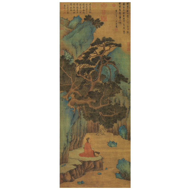 任仁发横琴高士图微喷打印宋元山水人物画临摹绢布画稿青绿山水画