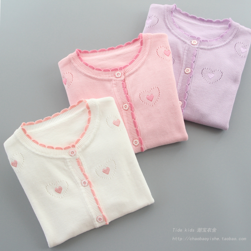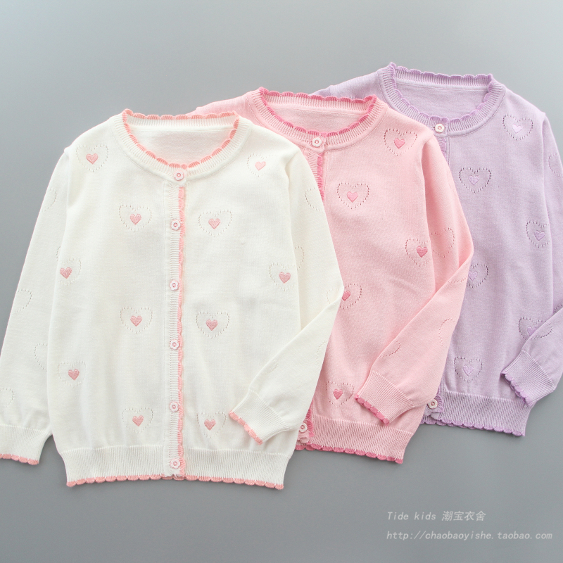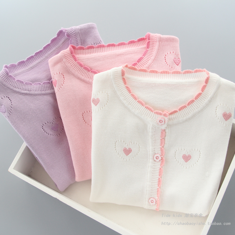 女童毛衣外套2024秋装新款儿童薄款镂空针织衫女孩纯棉线针织开衫