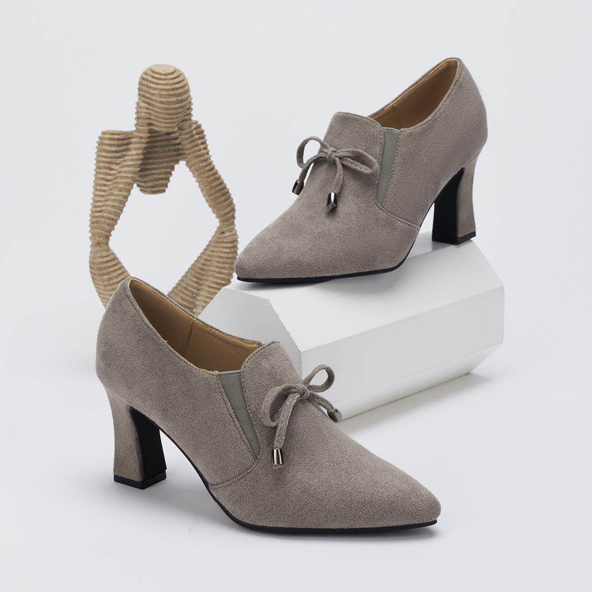 尖头深口结粗跟高跟鞋女2025春秋新款时尚休闲大码中跟单鞋女