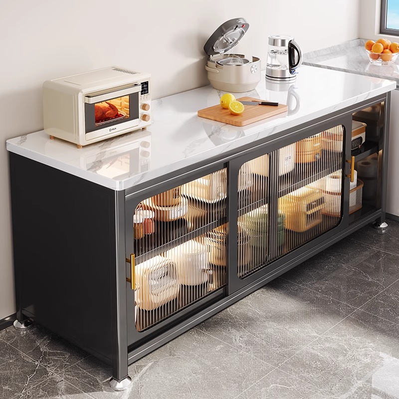 厨房新款置物架家用一体落地防尘储物橱柜多功能推拉门岩板餐边柜