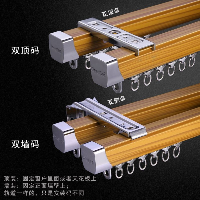 中式窗帘轨道直轨合金纳米静音滑轮窗帘杆滑杆滑杆路轨Z罗马杆双