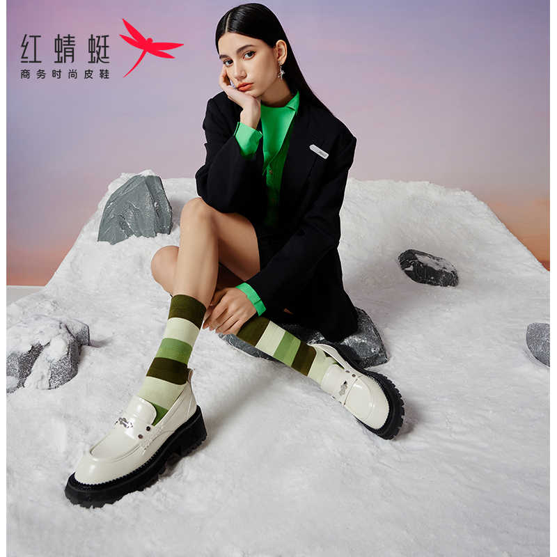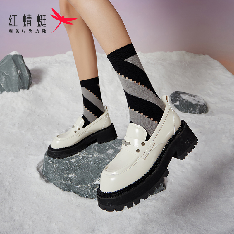 红蜻蜓软底乐福鞋女新款一脚蹬复古单鞋时尚复古平底女鞋断码清仓