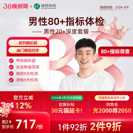 小红书同款--男性20+深度体检套餐 胃幽门肿瘤多项彩超职场中青年